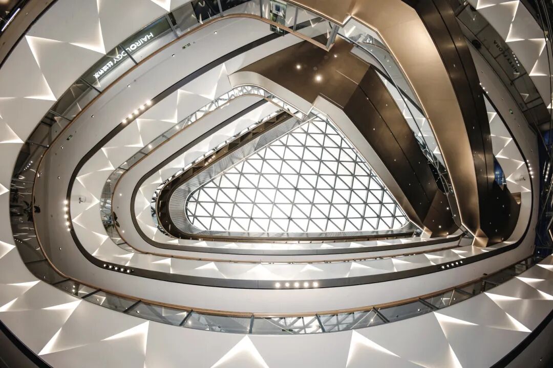 将山峦在建筑物上复制,运用菱形设计元素,通过交错、串联、融合的手法,折射出生活的五彩斑斓。