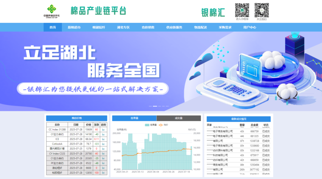 湖北长江区域棉花交易市场总经理徐神波介绍,传统交易模式在价格波动、供应链韧性及风险对冲等领域存在不少痛点。通过“银棉汇”,为纺织企业、贸易商提供系统化、规范化期货期权工具,能有效规避市场风险,走出了“以数字化平台链接产需两端、构建期现联动生态”的破局路径,为行业应对复杂市场环境提供创新思路。