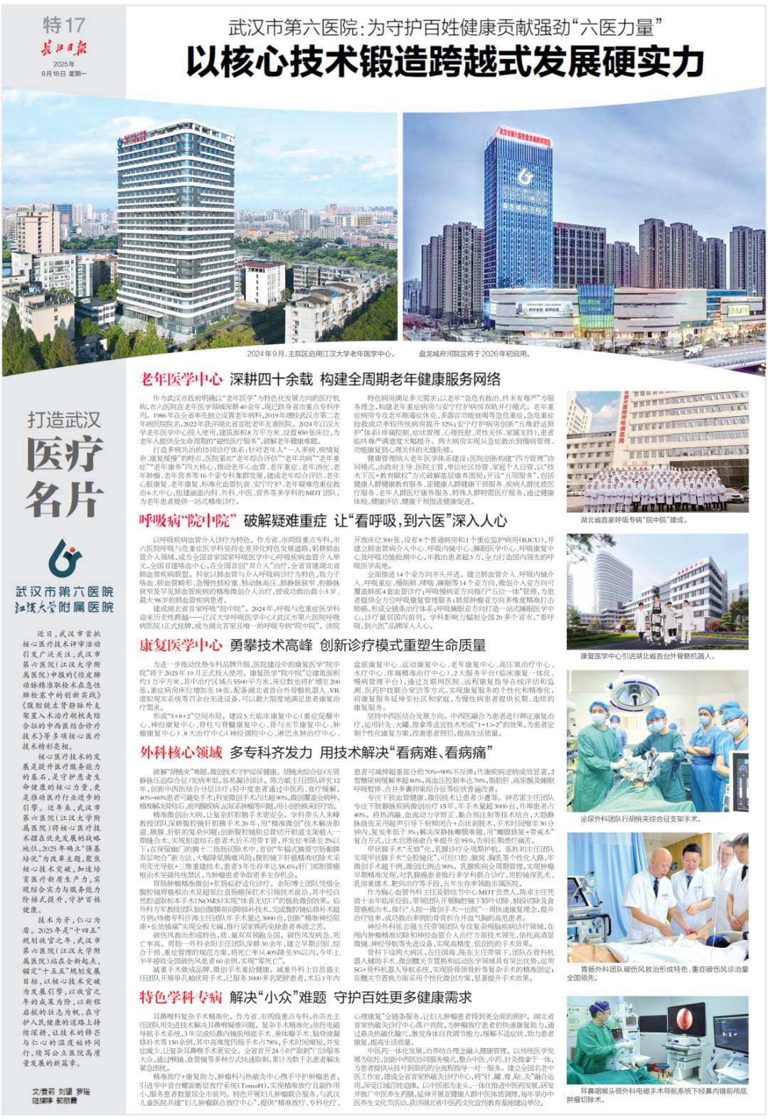 作为武汉市政府明确以“老年医学”为特色化发展方向的医疗机构,市六医院在老年医学领域深耕40余年,现已跻身省市重点专科序列。
