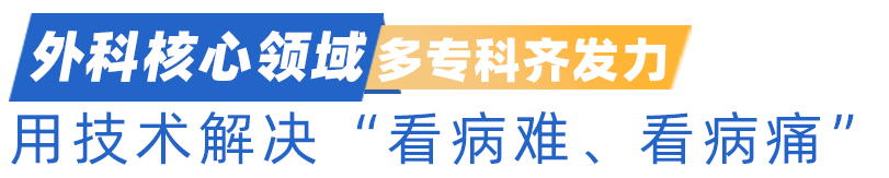 胃肠肿瘤精准微创+肛肠疝舒适化诊疗。余阳博士团队凭借全腹腔镜胃癌根治术及超低位直肠癌保肛术引领技术前沿,其中经自然腔道取标本手术(NOSES)实现“体表无切口”的极致微创效果。疝外科方军教授团队独创腹膜前间隙修补技术,完成腹腔镜疝修补术超万例。痔瘘专科许涛主任团队年手术量达3000台,创新“精准神经阻滞+长效镇痛”实现全程无痛,推行居家换药免除患者奔波之苦。