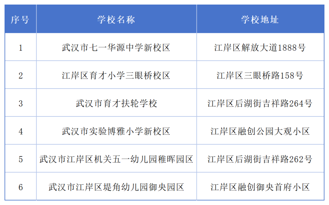 2025年秋季开学季,江岸辖区新增6所中小学、幼儿园,具体信息如下: