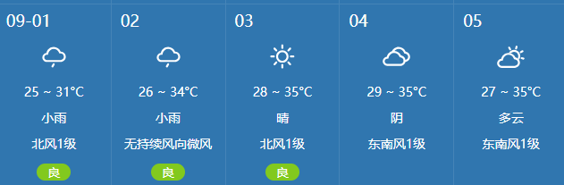 据预测,9月1日起天气将有小雨,早晚高峰交通潮汐现象显著: