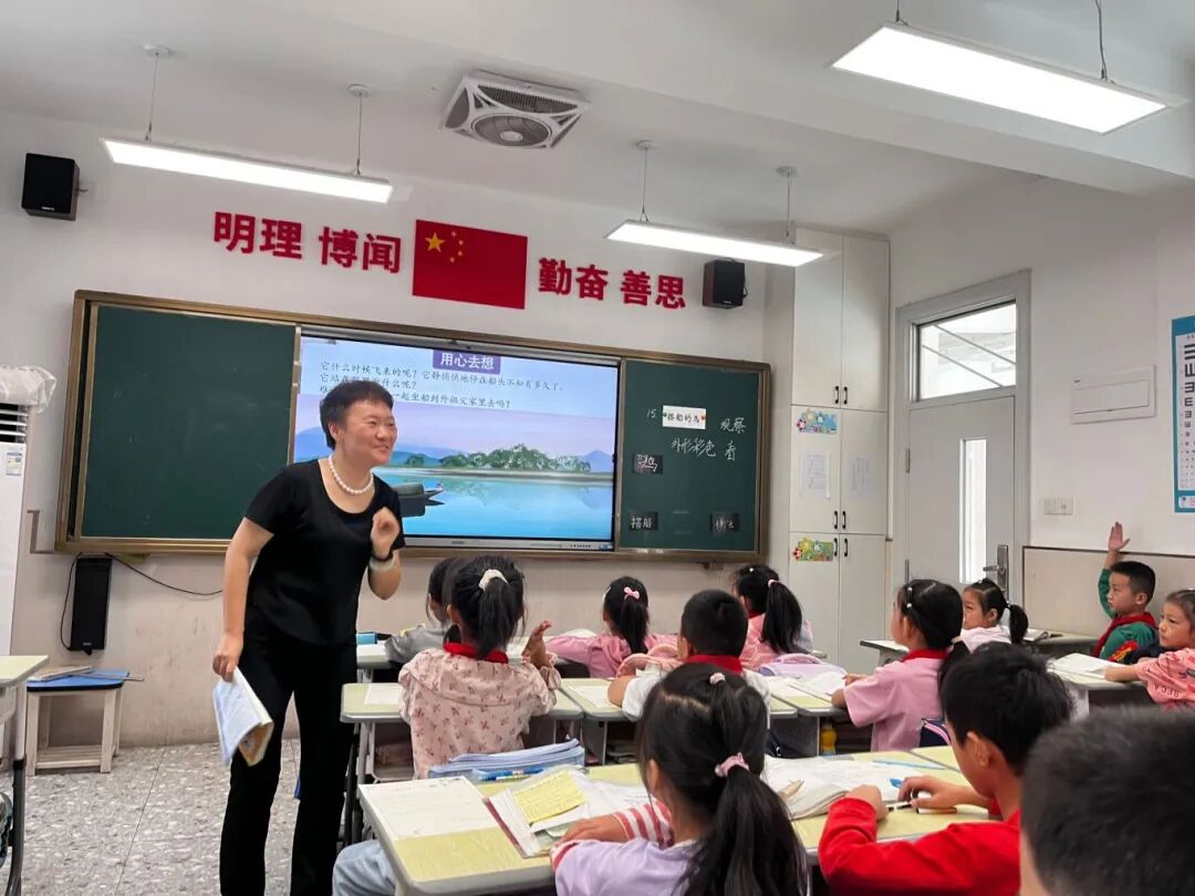 她的课堂是“五YUE”课程的生动注脚:拼音字母变成“四声儿歌”里的音符,孩子们拍着手唱着“ā á ǎ à,小兔跳台阶”。生字学习化身捉迷藏游戏,在教室绿植角找藏着的“木”“草”等字卡。为了让内向的孩子敢开口,她创设“小老师领读”岗位,用“你读得比春风还温柔”的夸赞,让自信的嫩芽破土而出。