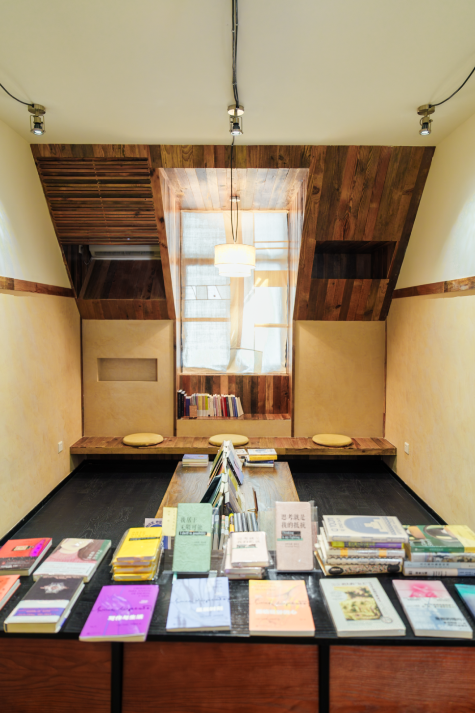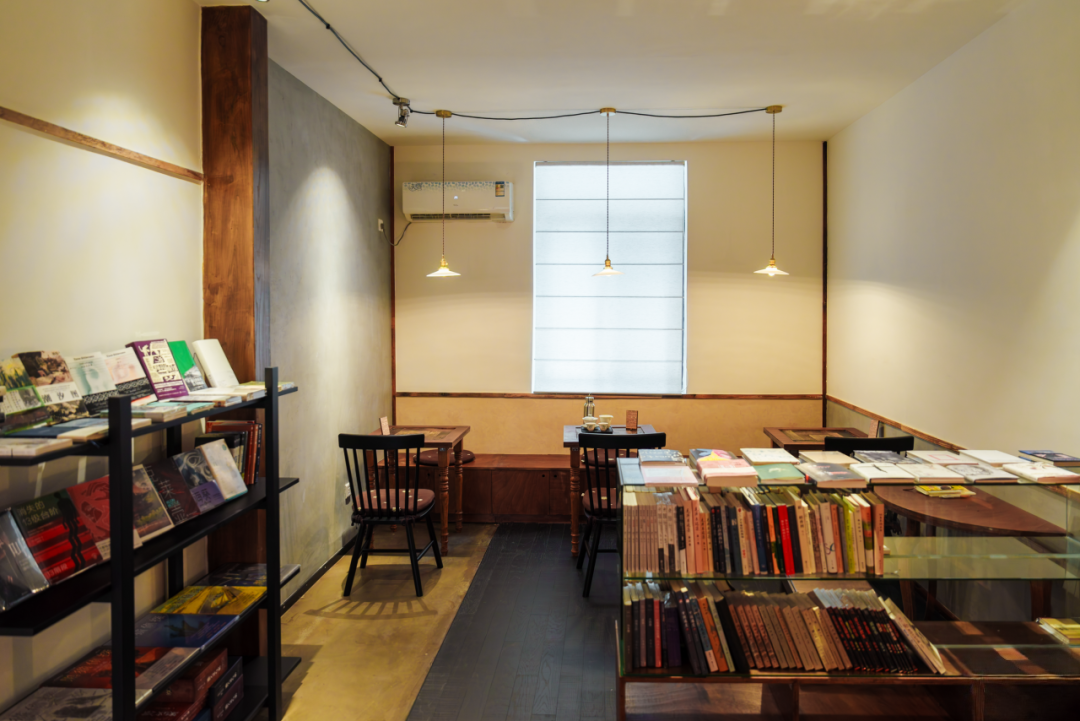 第二间木屋,严肃文学和推理小说是这里的主角,有种浓郁的中式书房气息,空间色调也随之暗沉下来,墙上、桌面,乃至各处边角,都是主理人专门淘来的老木头精心拼接而成。