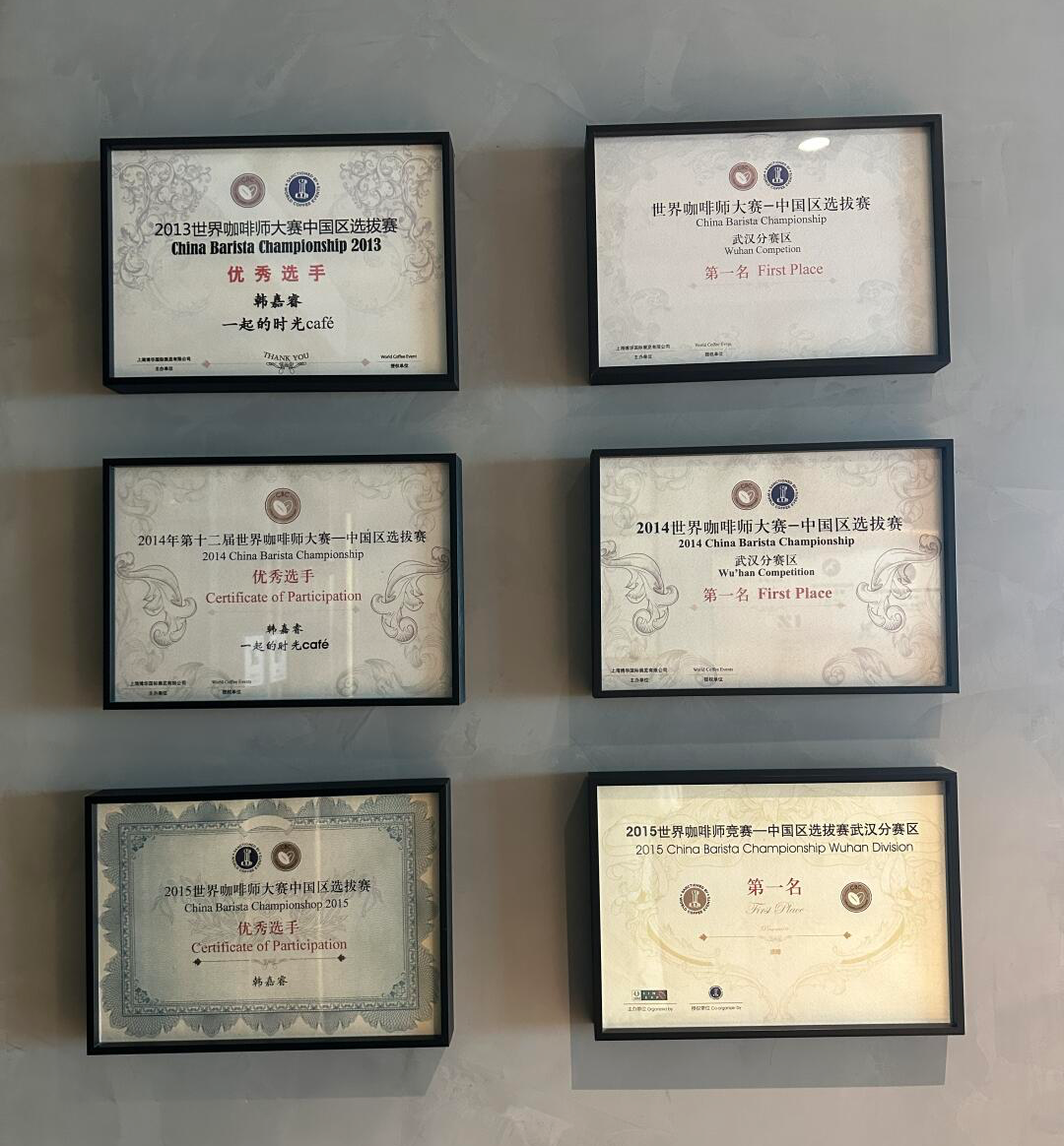 开业近10年的1Z COFFEE,除了拥有眺望长江的美景,更是一家专业的“冠军咖啡店”,店内挂满了主理人和咖啡师们的赛事佳绩。