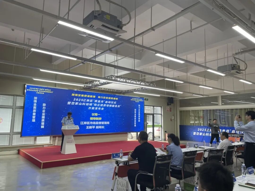 区市场监管局举办2025年江岸区“质量月”活动启动仪式暨岱家山科创城“助企提质增销服务月”方案发布会。联合多部门推动建立重点行业质量标准体系,为近百家企业破解质量痛点,助力优质产品送进千家万户。