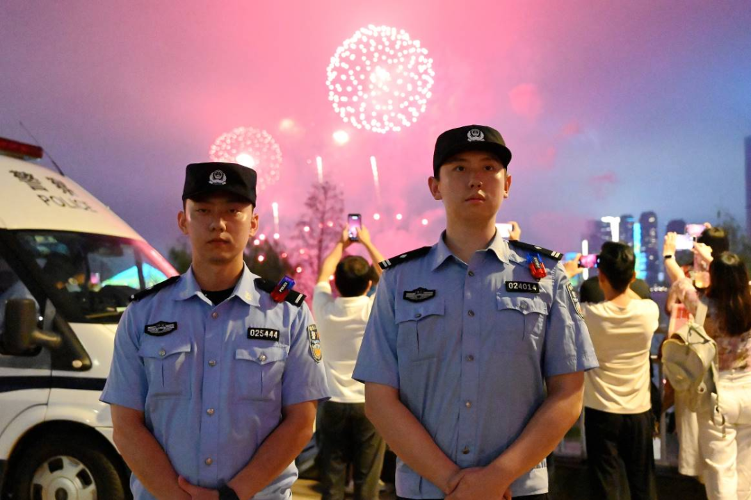烟花映江、人群欢动,9月12日,第二届长江文化艺术季开幕式圆满落幕。在绚烂光影的背后,一抹抹穿梭在人海中的“警察蓝”默默坚守,用汗水守护每一个笑容,让夜空璀璨亦平安。