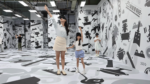 从体验中心出来,等候行列站满了人,一个约莫五六岁的小男孩刚体验完,迫不及待和朋友分享,小手比划着。