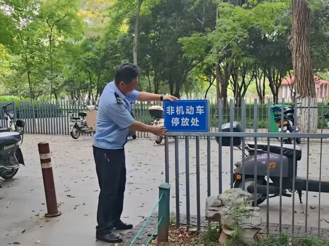 街道组织执法队员与网格员组成宣传小队,上门讲解责任内容,与商户签订《“门前三包”责任书》。面对商户反映的电动车“堵门”等实际难题,街道主动在解放公园路-惠济路等人流密集区划设非机动车停车区,设立指引牌,从源头上解决问题。商户心气顺了,态度也从“要我管”转向“我要管”。