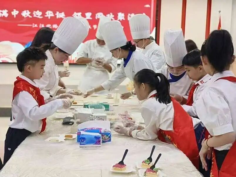 西马街道江汉北路社区开展“月满中秋迎华诞,邻里同欢聚温情”活动,邀请辖区党员及居民欣赏歌舞、制作非遗手工及月饼,享受健康义诊,在节日氛围中增进邻里情谊。