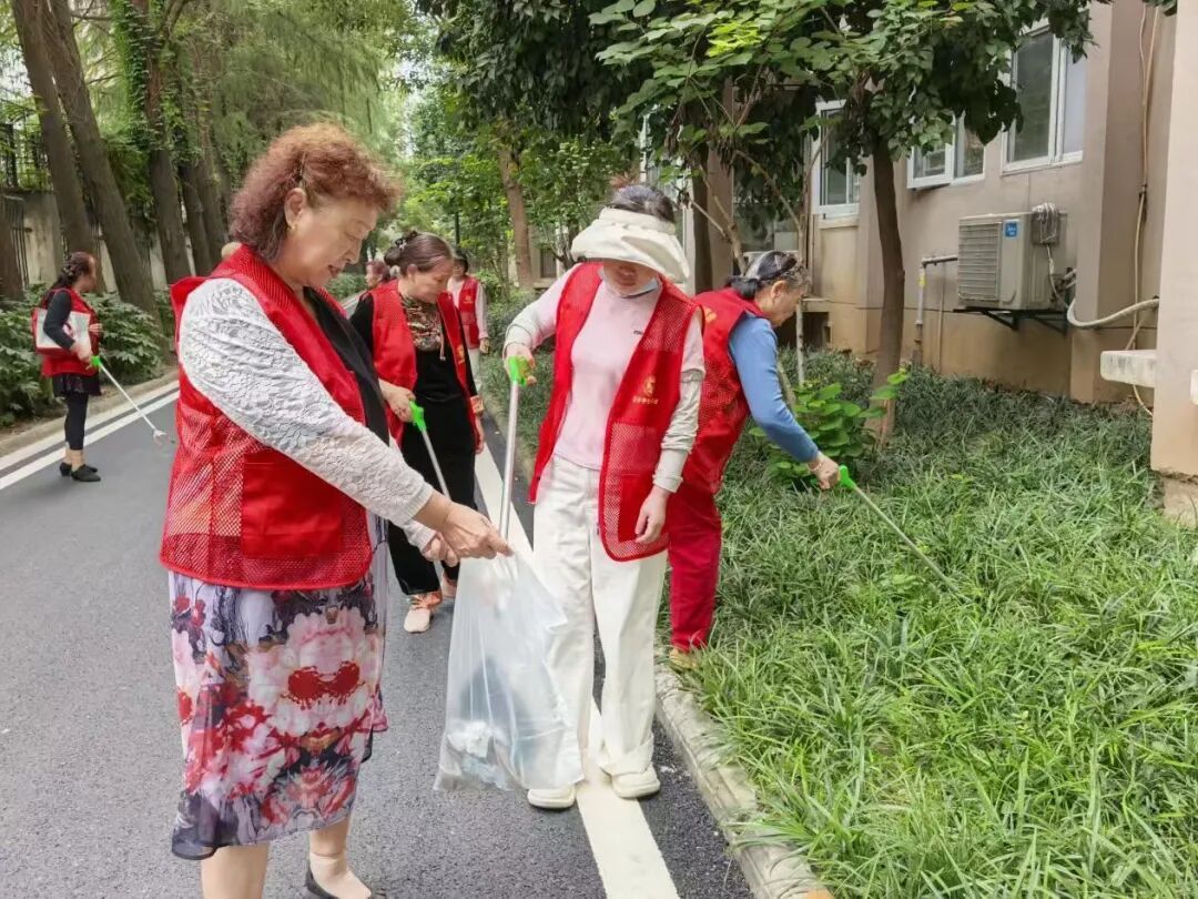 百步亭悦秀苑组织志愿者开展“清洁家园”活动,通过清理绿化带、处理闲置容器及积水,从源头消除蚊虫孳生地,营造更加整洁、健康的社区环境。