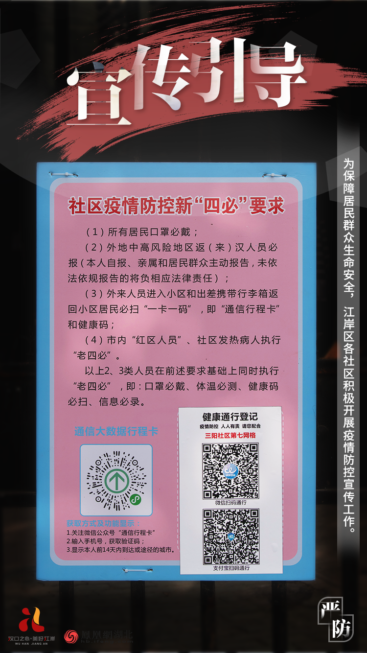江岸区多措并举开展冬春季疫情防控工作,严格落实人员管控不放松、公共场所常态化防控不放松、社会面宣传教育引导不放松等部署要求,营造常态化疫情防控浓厚氛围,筑起守护群众生命健康的坚强防线。 健康监测 群防群控 筑牢防线 宣传引导