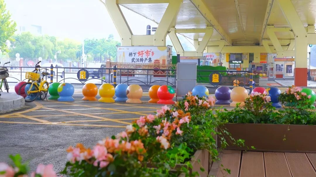 行至黄浦大街与解放大道交会处,“金桥——黄浦”线在此抵达终点,与武汉长江二桥相连。引桥下方,曾经单调的桥下空间,如今被赋予全新功能:靠近七一中学一侧改造为便民停车场,有效缓解了家长接送的停车难题。中央区域的特色市集有序开放,手工艺品与地方小吃琳琅满目。而当轻轨从桥上穿行而过,现代交通与市井烟火相映成趣,成为许多市民游客拍照打卡的城市新景。