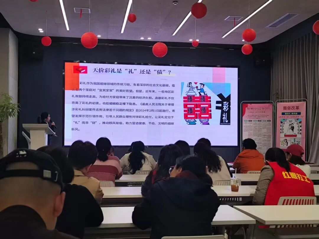 区民政局、区法院联合创立方产业园开展“以法护航”普法活动。法官以案释法,讲解夫妻权益等法律知识,并提供“一对一”咨询服务,为参与者精准答疑。活动还同步倡导婚事简办、新办等文明新风,努力打通法律服务与婚俗改革的“最后一公里”。