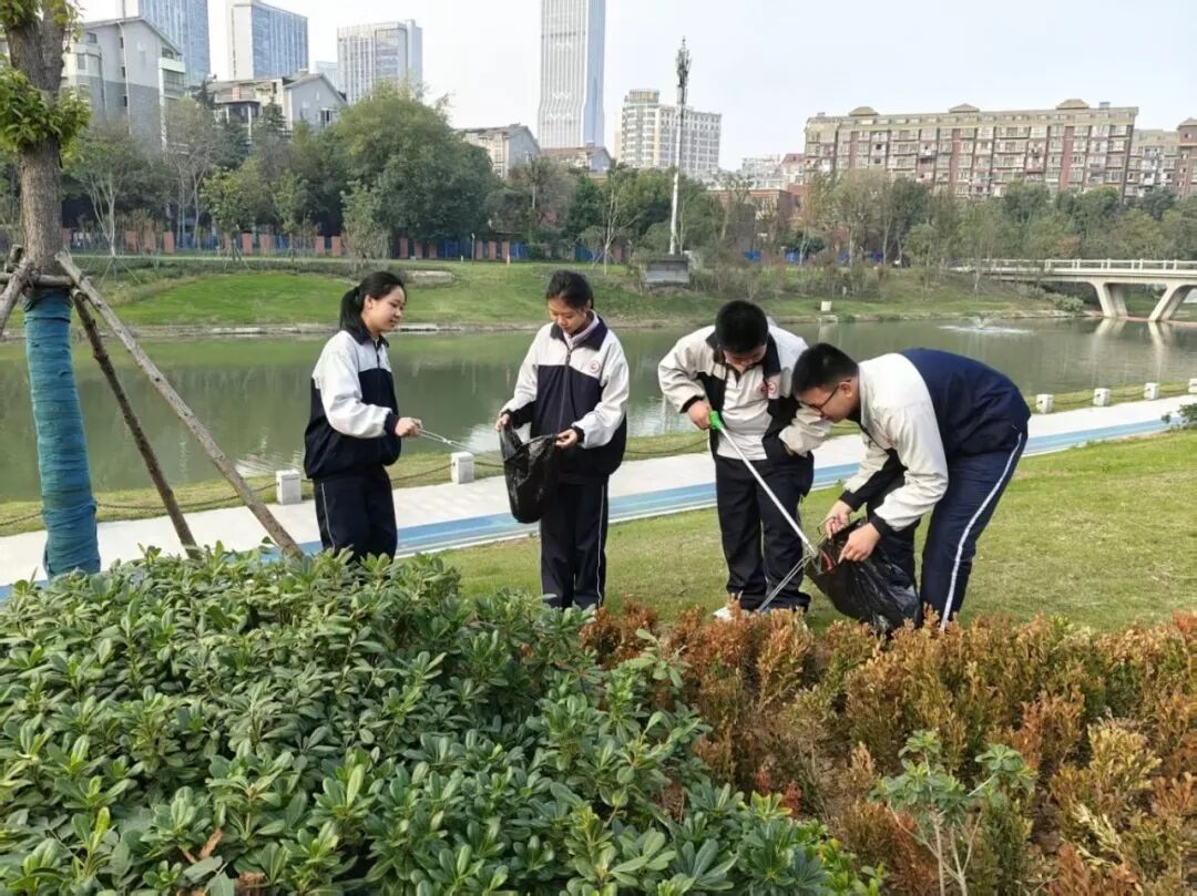 后湖街道联合江岸环卫集团、武汉市第十三中学开展环境清理专项活动。组织环卫工人、社区志愿者及“小小河湖长”队伍集中清理黄孝河岸线及绿化带垃圾,共护河湖洁净。