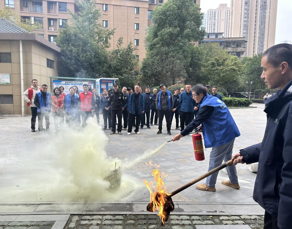 塔子湖街道华汇社区联合金潭消防站开展消防演练,通过模拟火情疏散撤离,演示救援处置、实操消防装备及灭火器等环节,提升居民的消防安全意识和应急自救能力。