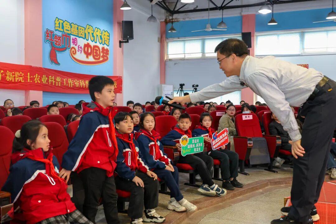 为鼓励学生持续探索,汪教授与参会嘉宾还向同学们赠送了科普读物《身边的农作物》以及由高校实验室精心培育的油菜种子,将科学的种子一并播撒进童心。