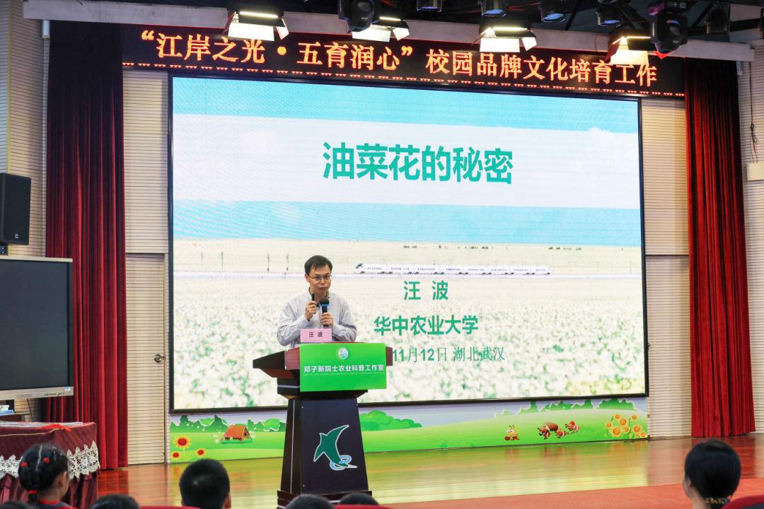 本次活动特邀邓子新院士农业科普工作室专家、华中农业大学汪波教授,以“油菜花的秘密”为题,带来一场科学与生活交融的精彩讲座。汪教授从“我们为何离不开油”切入,将油菜种植提升至国家食用油安全战略高度,深入浅出地讲解油菜作为过冬油料作物的独特价值——不仅适合作为水稻后茬种植,更富含与橄榄油相当的油酸成分,是名副其实的“健康油料”。