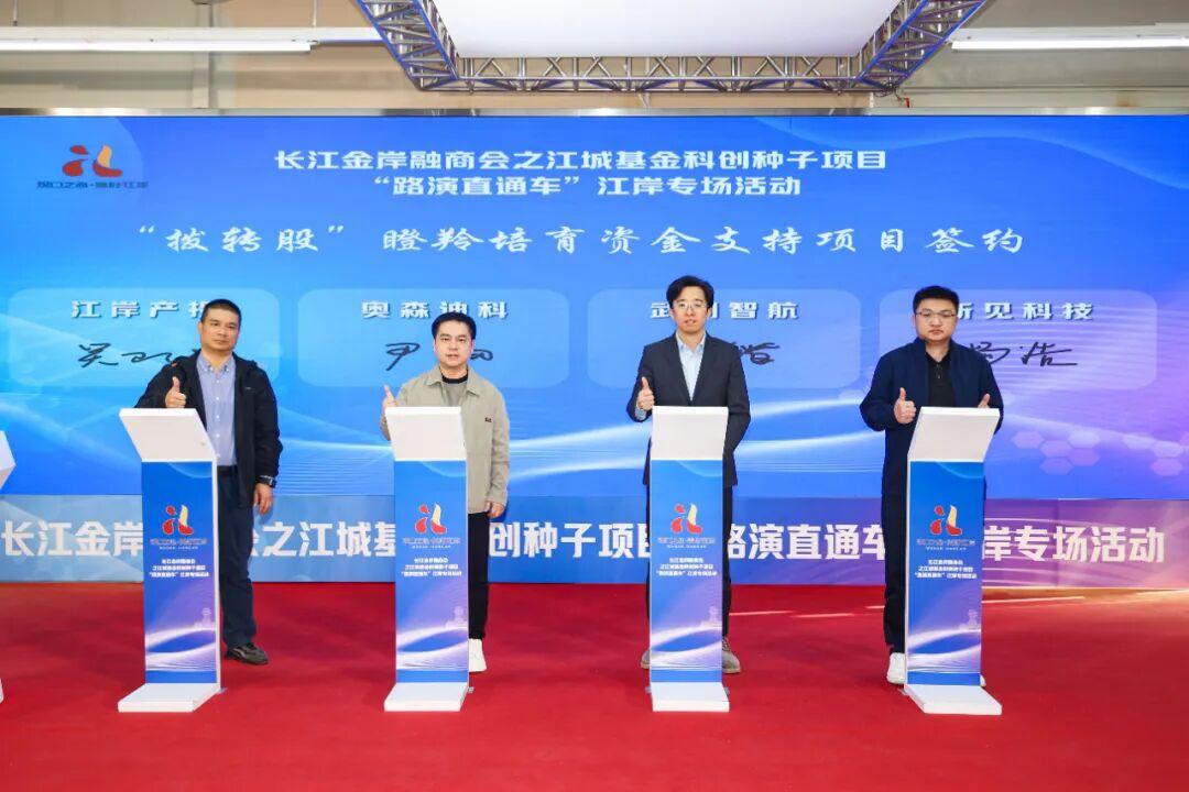 近日,长江金岸融商会之江城基金科创种子项目“路演直通车”江岸专场活动在岱家山科创城举行。活动现场,“长江金岸创投路演中心”正式揭牌,将为企业提供“投早、投小、投科创”的金融服务。