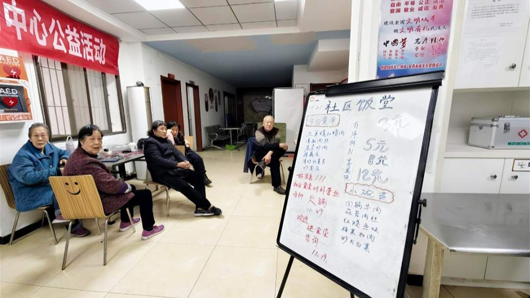 目前,“八栋楼”3号门旁200余平方米的公共院落已改造完成。昔日破旧的栏杆被拆除,取而代之的是充满设计感的花架,一盆盆绿植搭配活力橙边框,形成错落有致的立体景观。院子里新建的老年活动中心人气十足,既为行动不便的老人提供了活动空间,也兼具社区食堂功能,实现休闲、就餐一体化。