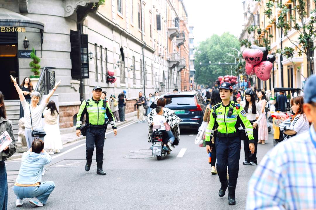 在沿江大道江汉关这一武汉地标路口,江岸交警组建的“邱益英女交警先锋队”与汉警快骑队员成为靓丽的城市风景,展现出为群众护航、为游客服务、为武汉增色的新时代交警风采。