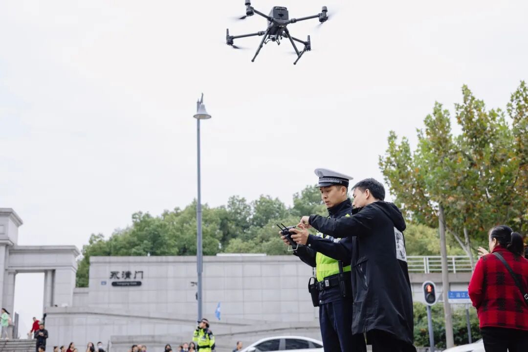 今年金秋菊展期间,江岸交警以“空地联动”模式护航汉口江滩及沿江大道出行。当路口密度大时,江岸交警指挥调度人员可通过城市智眼系统,利用无人机高空俯览视角,实时掌握现实情况,无人机在空中温馨提示、引导车辆规范停放,路面交警手势娴熟疏导行人安全过街,空地一体,全力保障道路通畅,让游客能安心逛展。