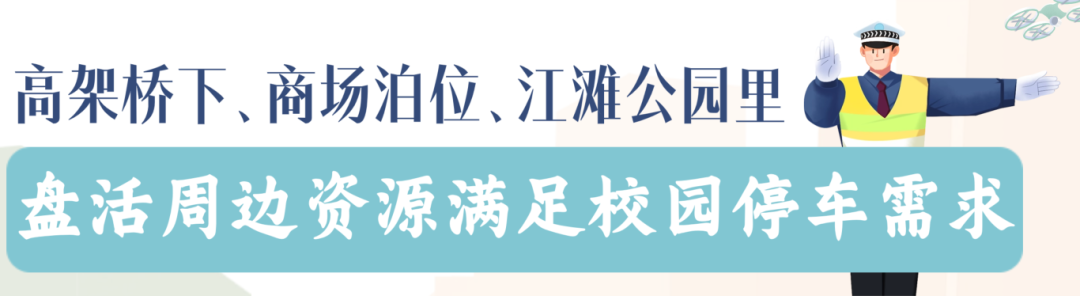 除了长春街小学,江岸交警还与企业及相关部门积极沟通,开辟停车资源,引导周边多所中小学的接娃家长借助周边大型商业综合体、汉口江滩停车场等短时停车。