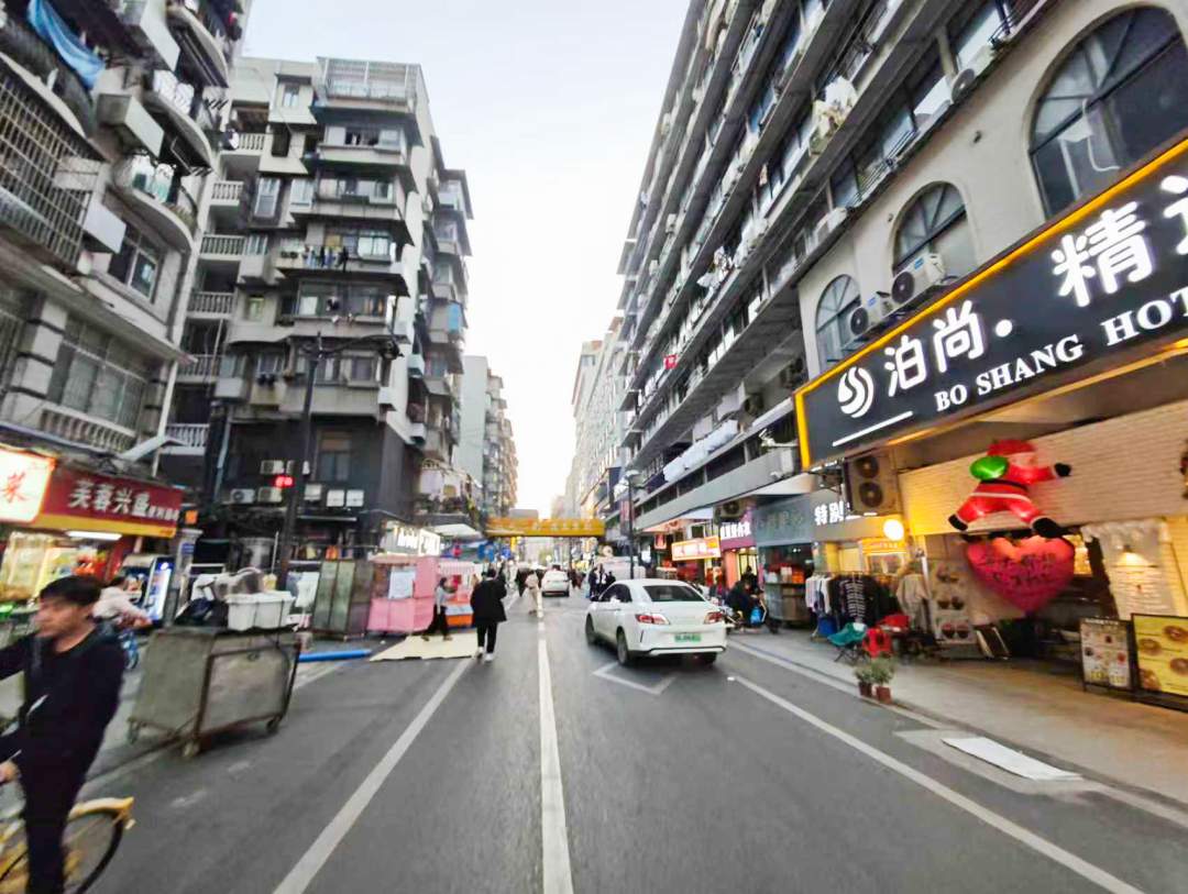 ■ 江汉一路上,昔日路边电线杆、空中电线和配电箱柜不见了踪影,小街看上去更加整洁清爽