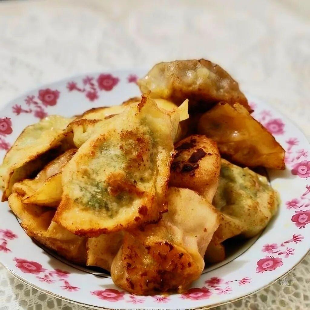 老板夫妻二人一个擀皮,一个调馅,手下捏出的饺子个个饱满。这里的招牌,是别处少见的四面煎饺。饺子周身都煎得金黄酥脆,咬下去咔嚓响,肉馅鲜香扎实。