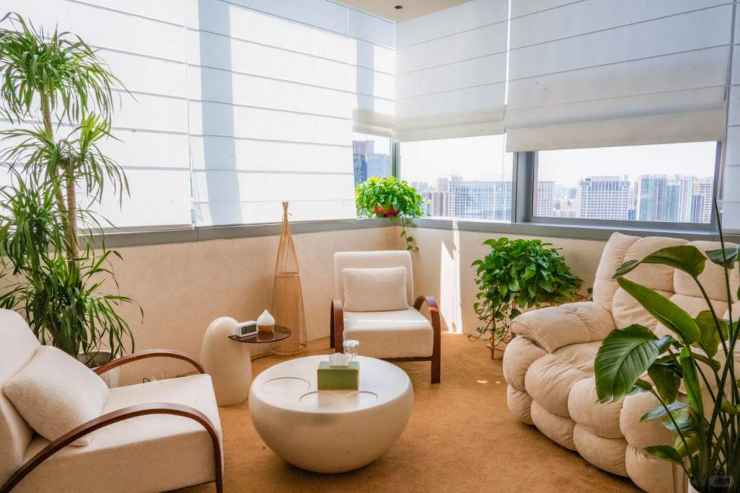 午休时间,便能在拾光者心理门诊开启一场心灵“SPA”。浅色调的空间里,柔软的沙发、宁静的绿植,静静托住每一份咨询,让情绪在这里缓缓着陆。