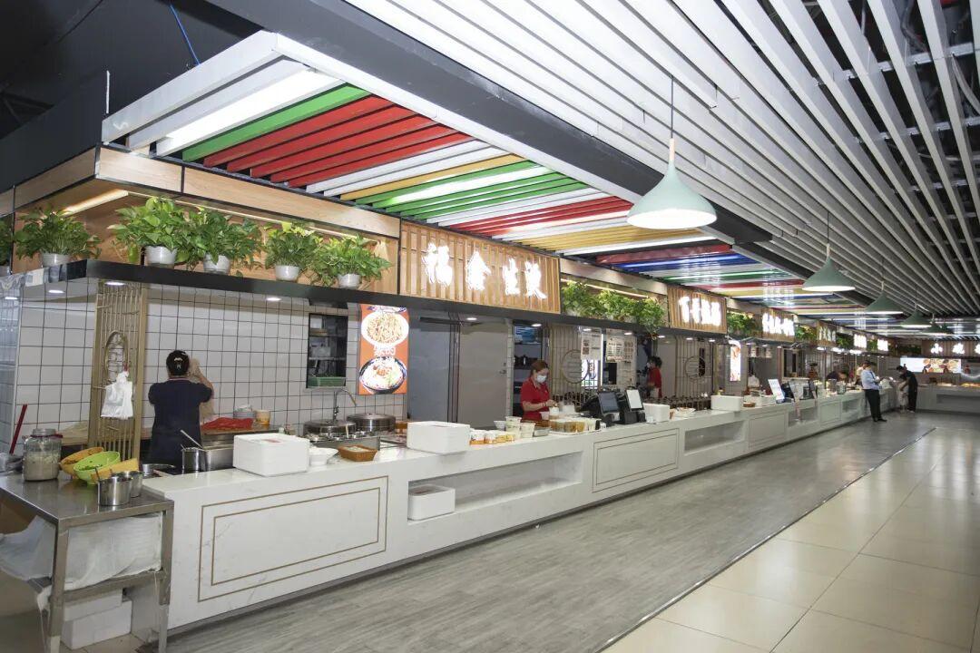 约2000平米的宽敞环境,设有十余个菜品丰富的档口,从家常小炒、麻辣香锅到广式烧腊等一应俱全,为工作日常注入了满满的“烟火气”。