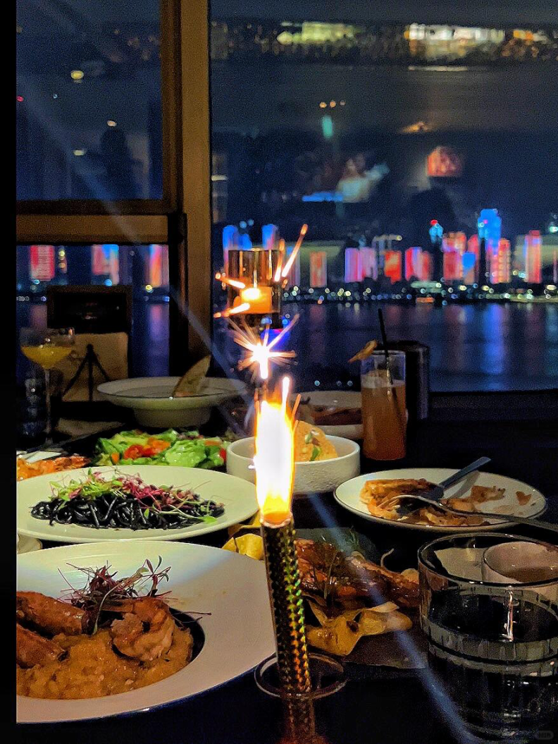 楼上的悦·Sur-Lounge全江景融合西餐厅则解提供了 “味觉 + 视觉” 的双重体验。餐厅多布局在视野开阔的楼层,主打融合菜与精致简餐,