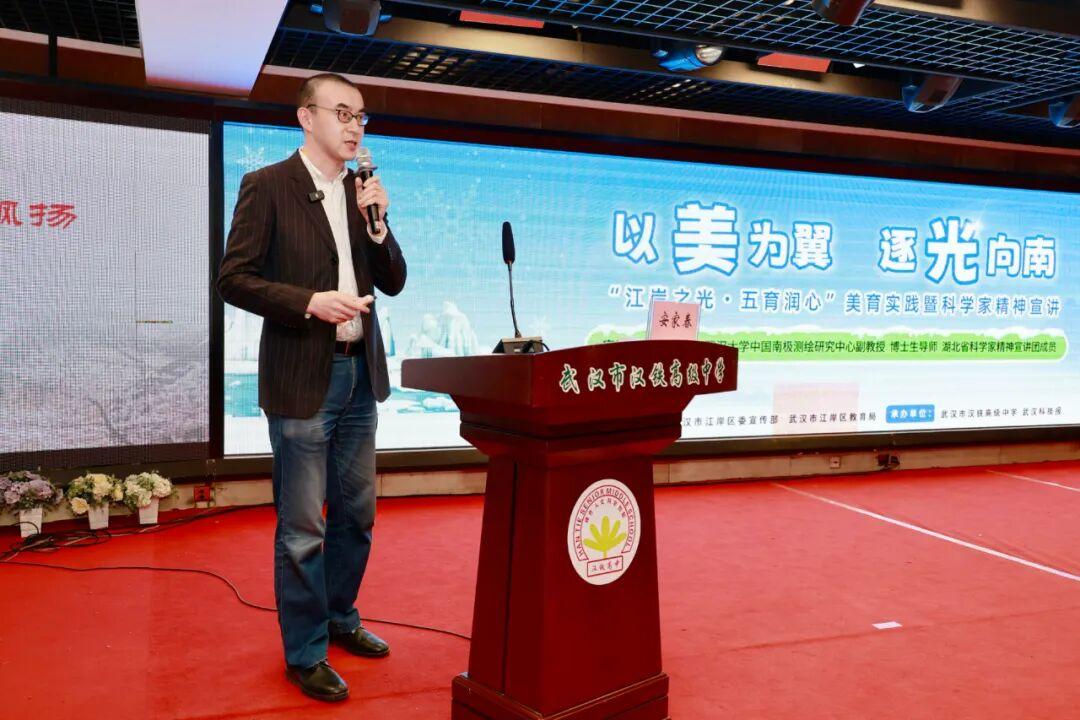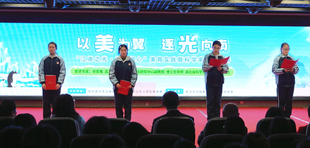 极光为幕,冰雪为纸。当画笔勾勒出南极的中国红,当VR镜头穿透万里冰封,美育,便成了一场看得见的信仰之旅。近日,“江岸之光·五育润心”美育校园文化实践活动在武汉市汉铁高级中学举行,活动将科学家精神主题宣讲与书信表达、艺术创作相结合,200余名师生在校园文化活动的沉浸体验中感悟家国情怀。