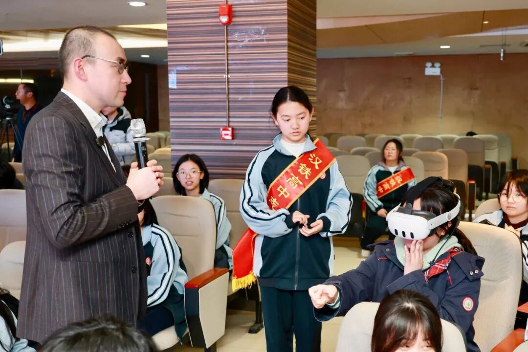 互动环节,学生们踊跃提问:“人类最近的减排活动对南极的生态恢复起到一个什么样的实际意义?”“科考队员平时在科技调研活动中是否会对南极动物产生影响?”安教授从低碳生活聊到保护生态,从个人理想谈到家国使命。一场对话,让科学的种子与爱国情怀悄然扎根。VR体验区更是人气高涨。学生们戴上设备,“沉浸式”感受南极冰盖的浩瀚与科考现场的艰辛,探索的兴趣被极大激发。