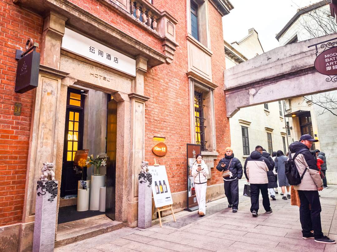 也有人选择在老房子里住上三天,慢慢体会历史建筑味道。位于咸安坊中心的香氛特色民宿纭间酒店里,阳光洒进老房天井,住客孙女士正坐在小庭院的藤椅上喝茶,她说:“小庭院的天井能晒太阳,房间推窗就能看到红瓦屋顶,这种氛围感是连锁酒店没有的。这里地理位置也特别好,逛街、吃饭都方便。”