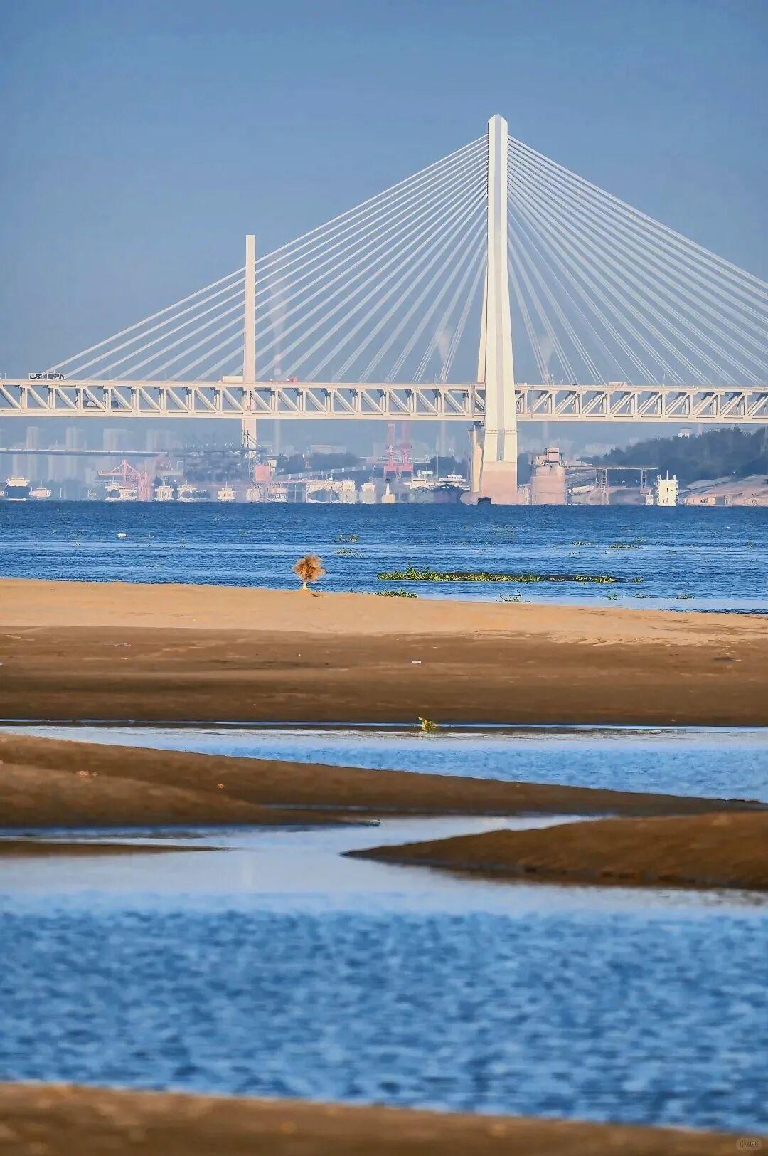 导航大地花海,步行至二七长江大桥下滩涂。