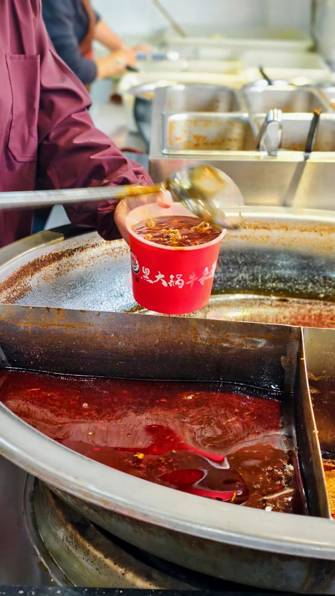 这锅汤是众多过早单品的灵魂,红亮油润,浮着一层细密的油花,却不腻口。牛肉、牛杂、牛腩、萝卜浸在汤里煨煮到酥烂。萝卜吸满了牛肉的鲜香,比肉卖得还要俏。