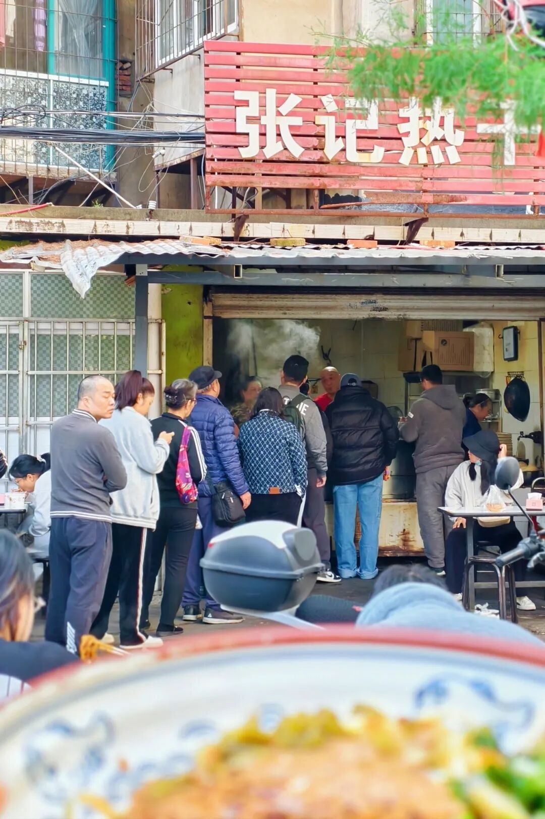 可就是这样一家看似其貌不扬的店铺,却是实打实的过早热门款。眼见20多米长的队伍拐出了巷子口,一大早都没断过。街坊邻里哪怕可以“近水楼台先得月”,也要赶早来吃一碗热干面。