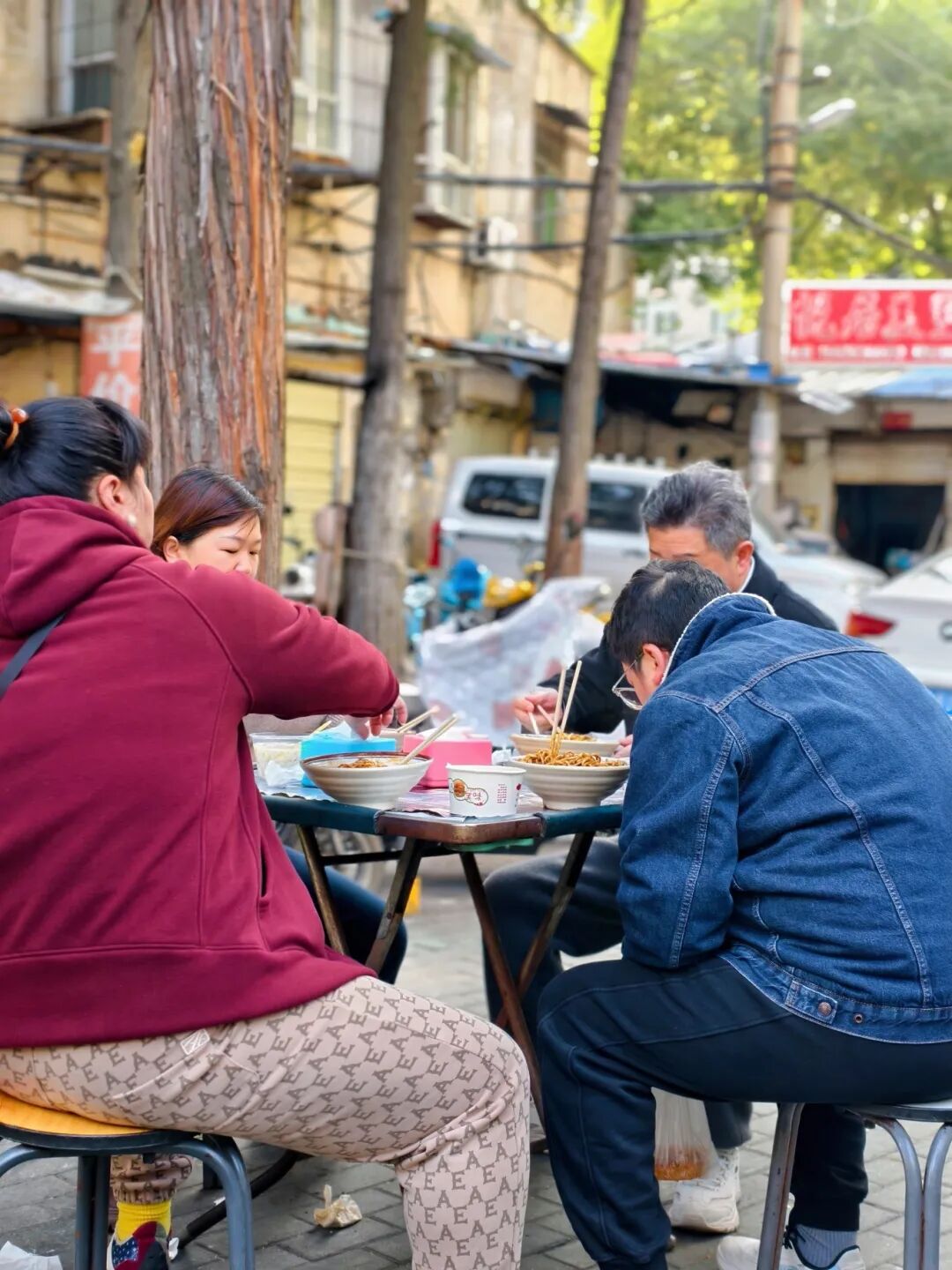就连素粉也不敷衍,一勺三鲜臊子堆得冒尖,再添上几筷子卤得油润的花菜,简单里透着讲究。