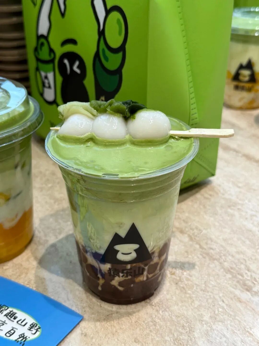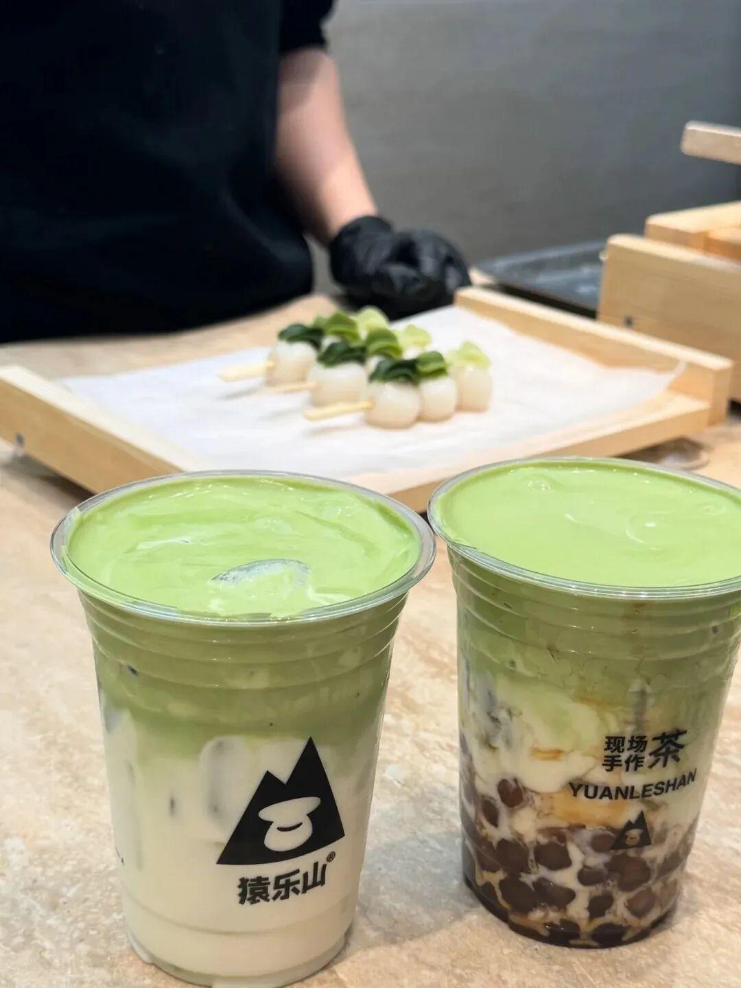 猿乐山主打现场手作茶,以抹茶系列为核心特色,注重产品创新与茶文化融合,招牌产品超浓抹茶拿铁选用国标一级抹茶粉,茶香浓郁醇厚。