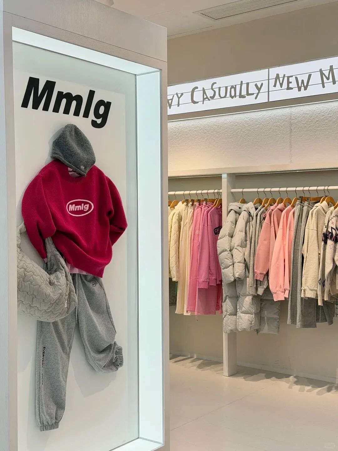 Mmlg主打街头休闲风格,其产品以基础款服装为核心,涵盖T恤、卫衣、裤装等品类,以圆形品牌标识强化设计辨识度,同时延伸开发包袋、帽子等配饰。