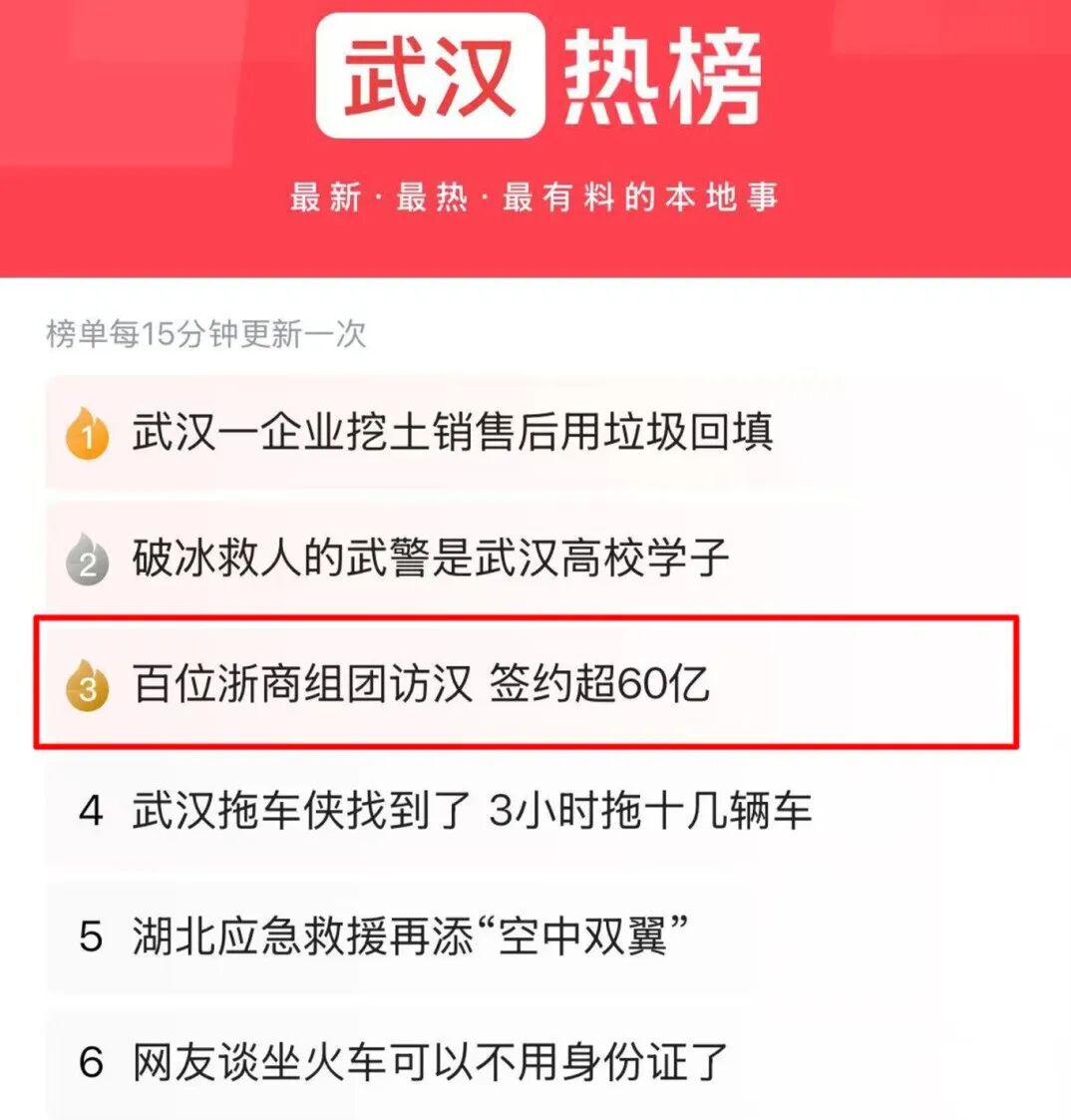 登上今日头条武汉同城热榜前三
