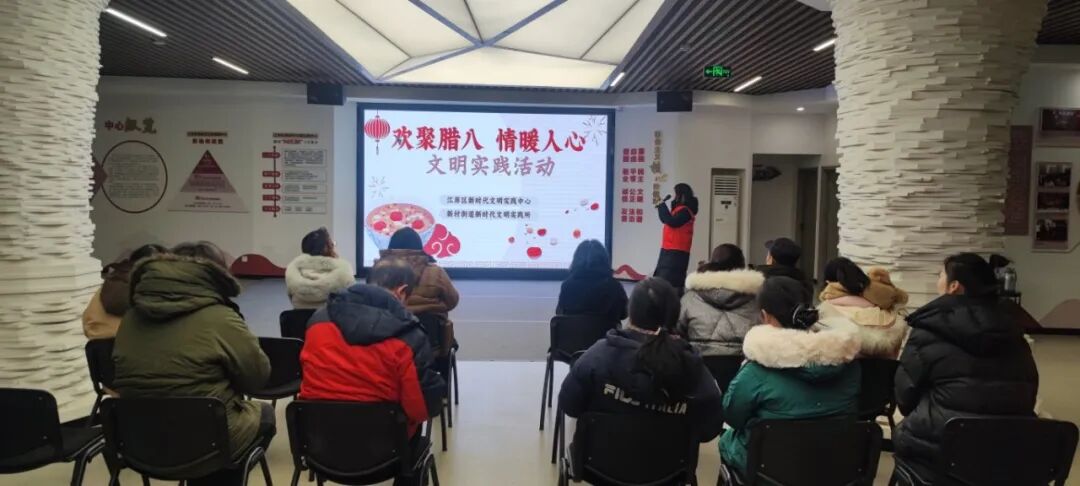 区委宣传部在区新时代文明实践中心开展“欢聚腊八,情暖人心”文明实践活动,通过向居民讲解腊八节的历史、文化习俗等,传递节日温暖,营造邻里互助、尊老爱幼的和谐社会氛围。