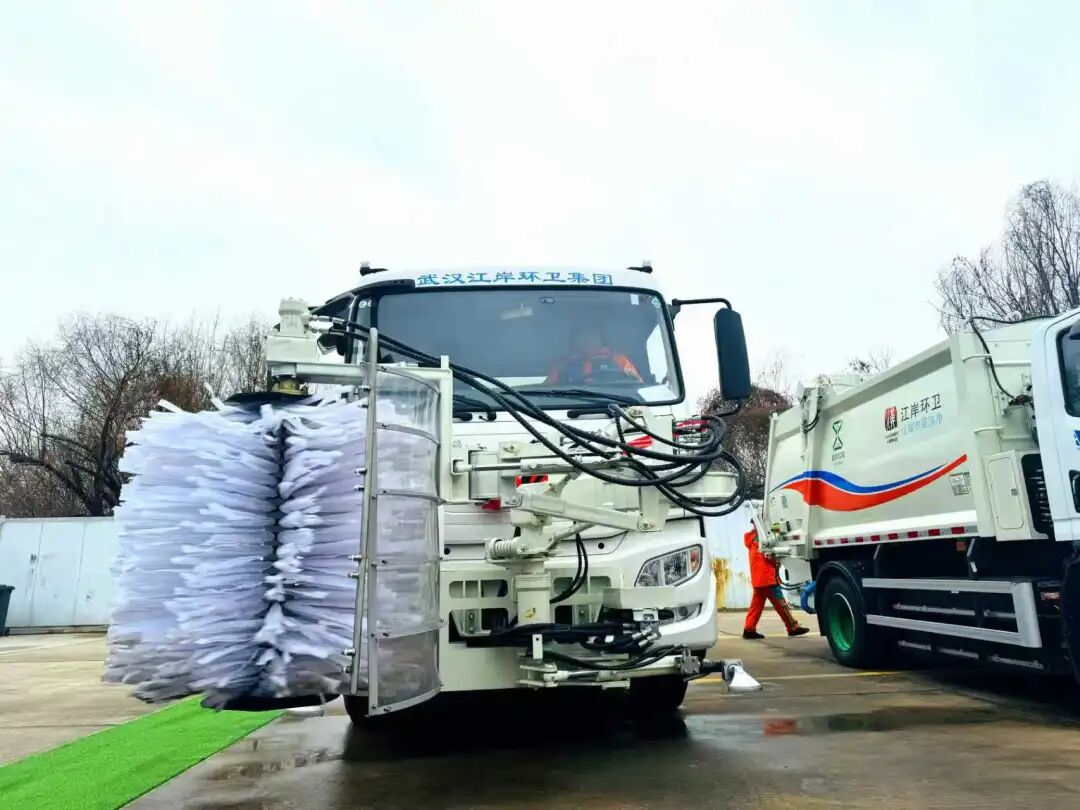 江岸环卫集团清洗公司环卫工人表示试驾一台前端安装了巨大滚刷的清洗车后,赞不绝口。“前面的滚刷有3个机械臂,前后左右伸缩自如,不会遮挡司机视线。清洗高架桥的防撞墙、隔音屏和护栏,简直太方便了。”他想起以前清洗解放大道路缘石,只能用高压水枪人工冲洗,如今只需驾驶这台清洗车即可。