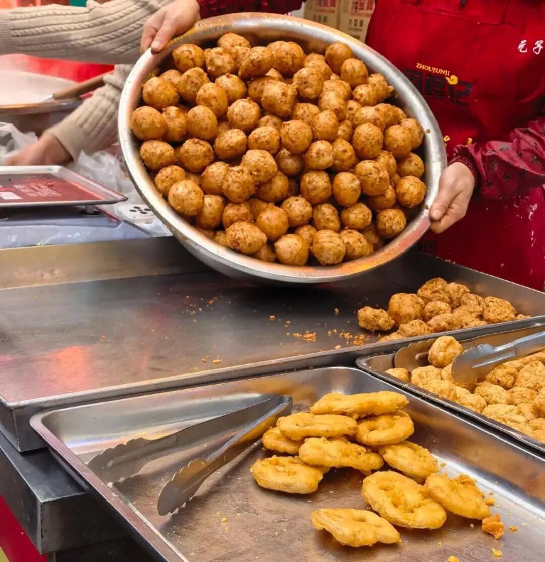这些炸圆子,串联起江岸传统“打年货”的场景。油锅翻滚间的香气,现买现炸的新鲜,让这份“年味”拥有扎实口碑,聚拢起江岸的新春烟火。