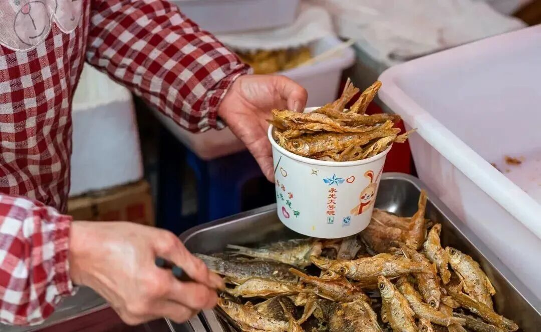 “她们屋里东西都蛮‘真’,像自己在家炸的。”在等炸小鱼的过程中,熟客们松弛地攀谈着,不时有路人被香味吸引,走过来一探究竟。老板娘通常会邀请顾客尝一个,这份真诚和热情,也让这份炸小枯鱼成为不少人心中“家的味道”。
