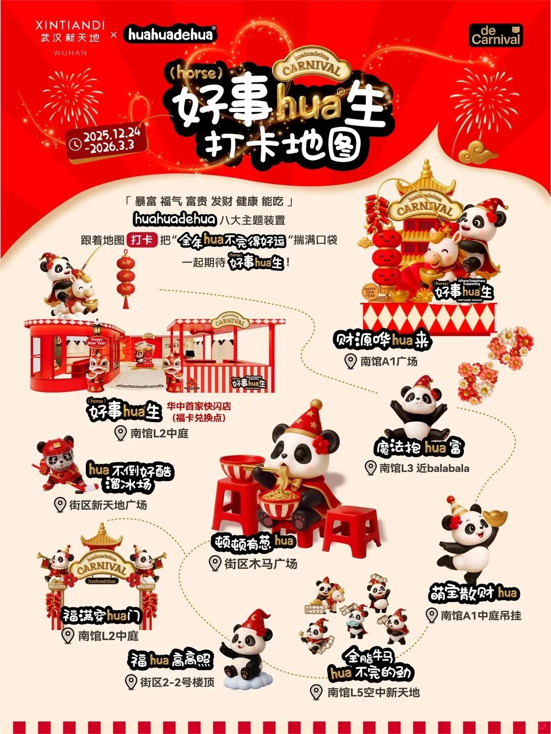武汉新天地商圈设置8个打卡点,分布在南馆和街区各处,这么多好玩好拍的,快来武汉新天地和huahua开启欢乐打卡吧。