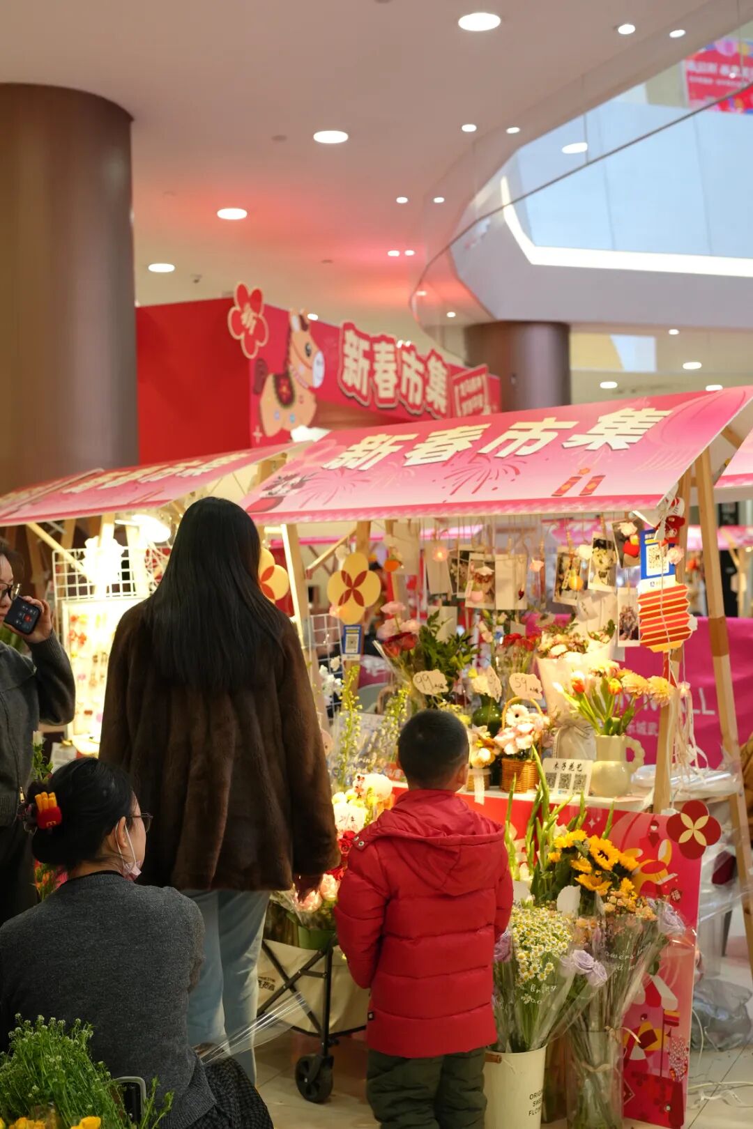 除了庙会,还有鲜花市集等你来逛,期间设有花神巡游,周末将联动商户增设年货摊位。
