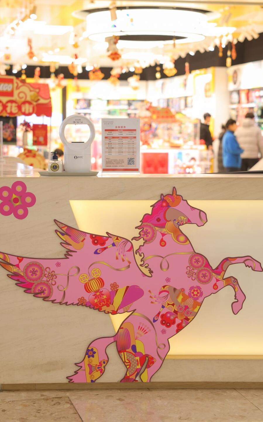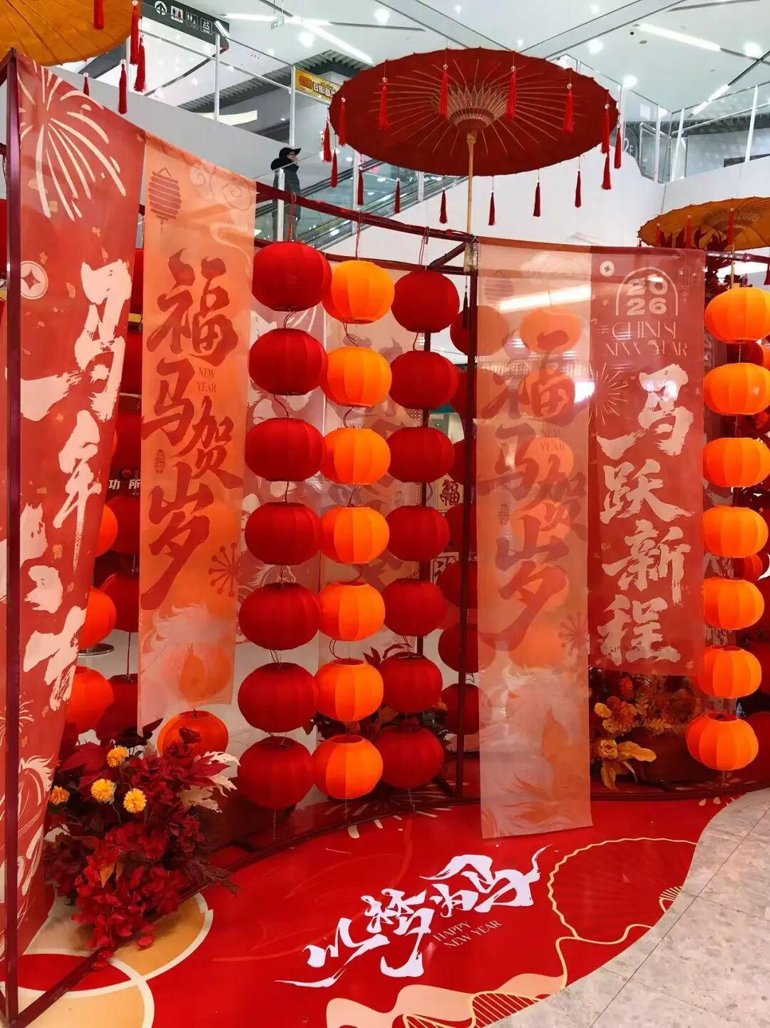 在永旺梦乐城武汉金桥,商场中庭内,马年主题装置藏着新春巧思,“骏马”自带驰骋自如的气场,新春市集热闹非凡,带你跃入热闹的江岸烟火。