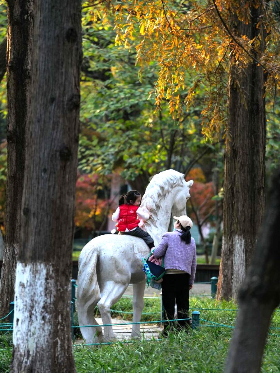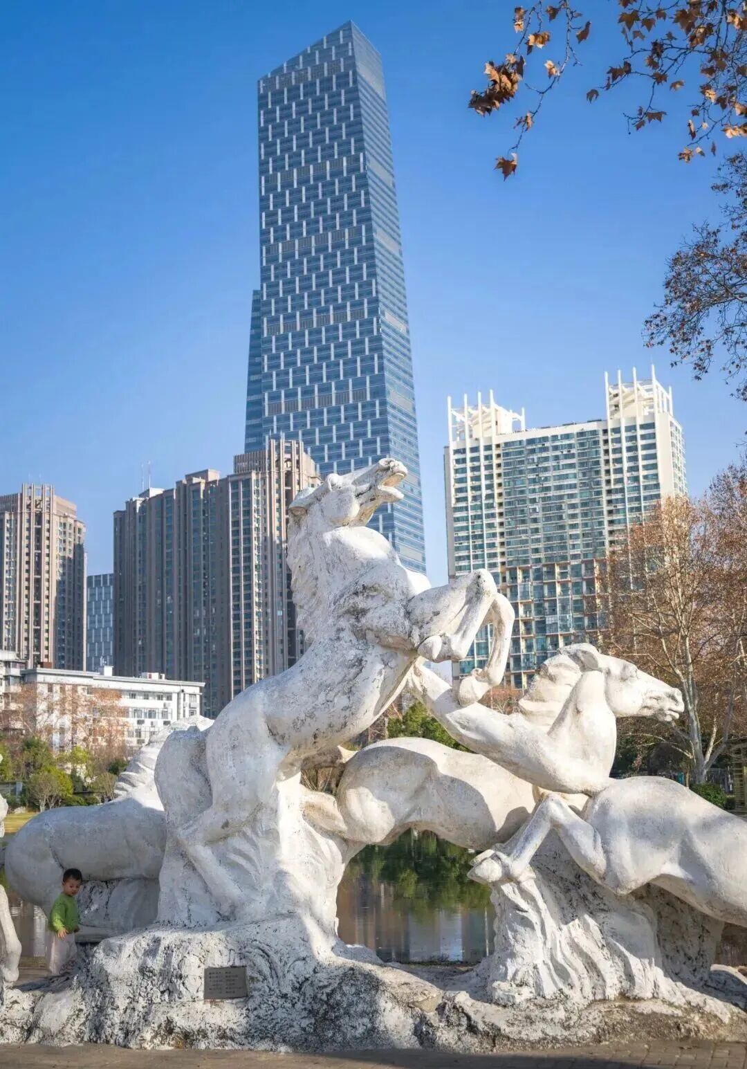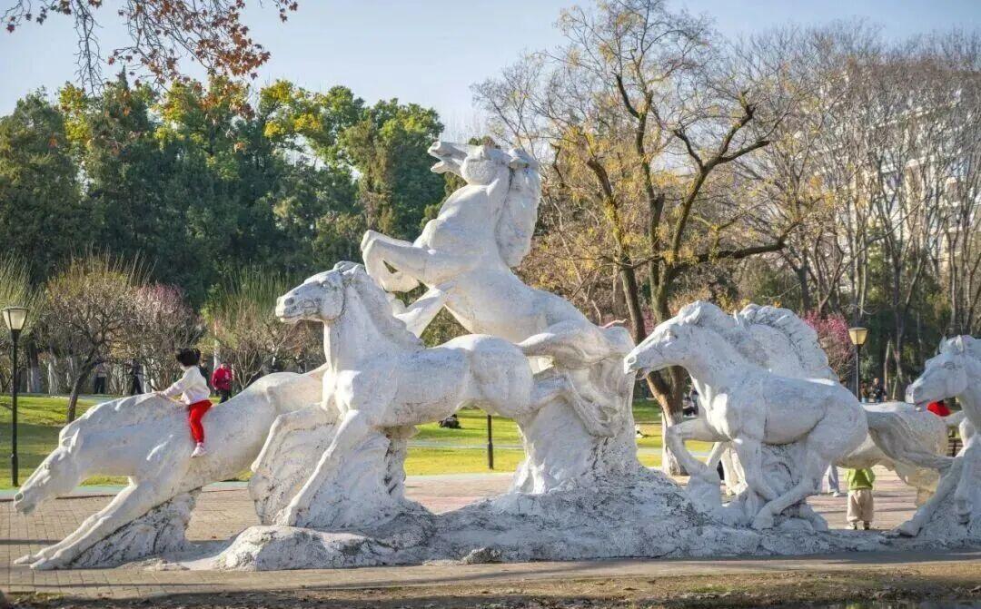 解放公园内的“八骏马”是著名雕塑,也是不少江岸伢的“童年”。